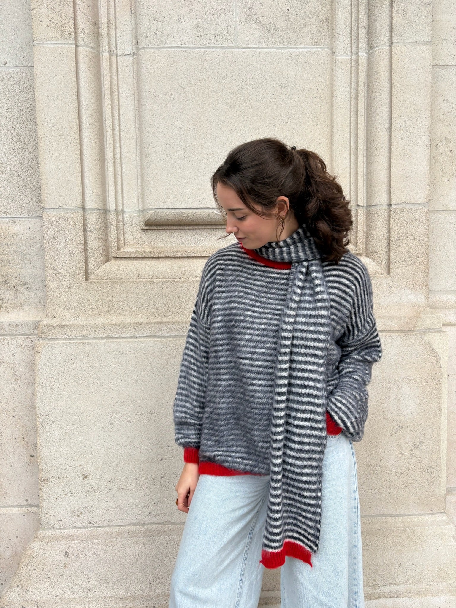 Pluffy pull and scarf combo